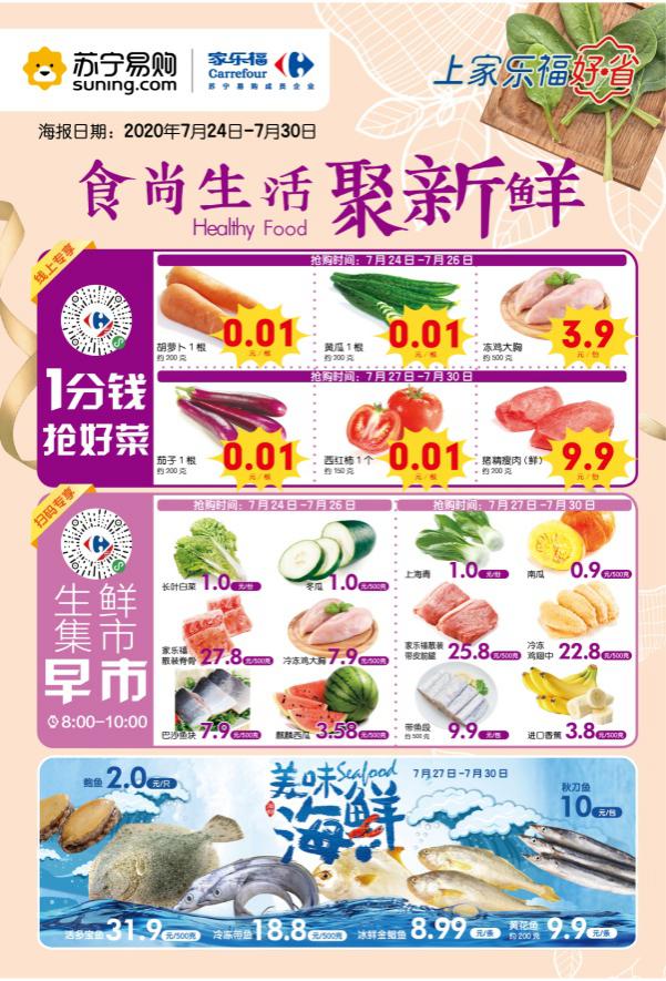 見(jiàn)圳客戶(hù)端·深圳新聞網(wǎng)2020年7月24日訊 為慶祝進(jìn)入中國(guó)市場(chǎng)25周年,家樂(lè)福為線上用戶(hù)帶來(lái)專(zhuān)屬福利—“1分錢(qián)每天搶好菜”。即日起,消費(fèi)者只需支付1分錢(qián),即可輕松為全家?guī)Щ匾坏澜】岛貌?,輕松享受便捷的品質(zhì)消費(fèi)。