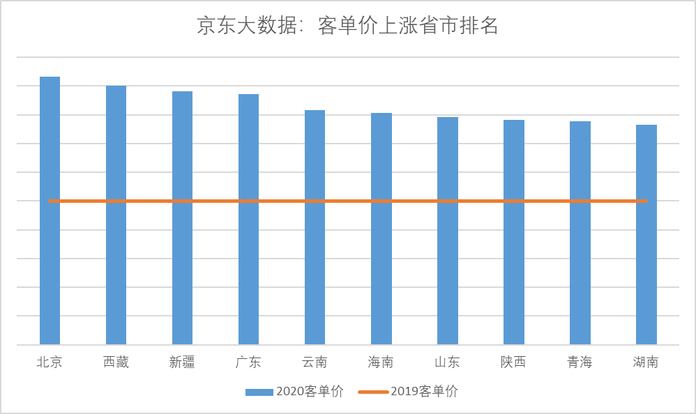 但是,消費者采購月餅時卻呈現(xiàn)出更積極的上升趨勢:據(jù)京東大數(shù)據(jù),今年京東平臺上不但用戶數(shù)大幅增加,其中相當(dāng)大部分新用戶來自低線市場用戶,而且消費者相比去年更加追求品質(zhì),大品牌、高規(guī)格的月餅禮盒熱銷,因此月餅平均客單價比去年上漲了35%以上。下圖可見,除北京廣東等發(fā)達(dá)地區(qū)外,客單價上漲的主要動力來自于西北、西南和華中等地區(qū)。