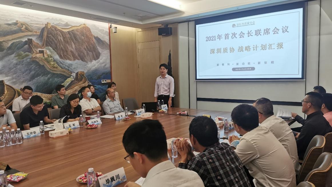 見圳客戶端·深圳新聞網(wǎng)2021年4月22日訊 近日,深圳市質(zhì)量協(xié)會2021年首次會長聯(lián)席會議在市質(zhì)協(xié)副會長單位銀廣廈集團有限公司成功舉辦。深圳市人民政府原副市長陳彪,原廣東省政府參事、原深圳出入境檢驗檢疫局局長、市決咨委——市先行示范區(qū)專家劉勝利,深圳市質(zhì)量協(xié)會會長、深圳航盛電子有限公司董事長楊洪以及各在深副會長出席了本次會議。