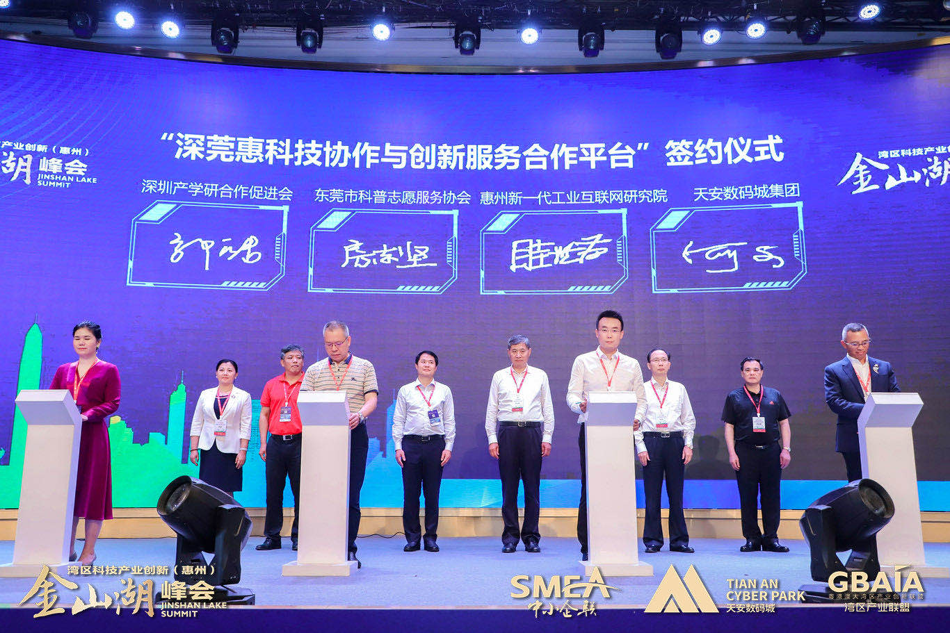 值得一提的是,在本屆峰會上,在一眾嘉賓的共同見證下“深莞惠科技協(xié)作與創(chuàng)新服務(wù)合作平臺”順利簽約,《灣區(qū)產(chǎn)業(yè)聯(lián)盟(惠州)科技創(chuàng)新展示中心》正式啟動。