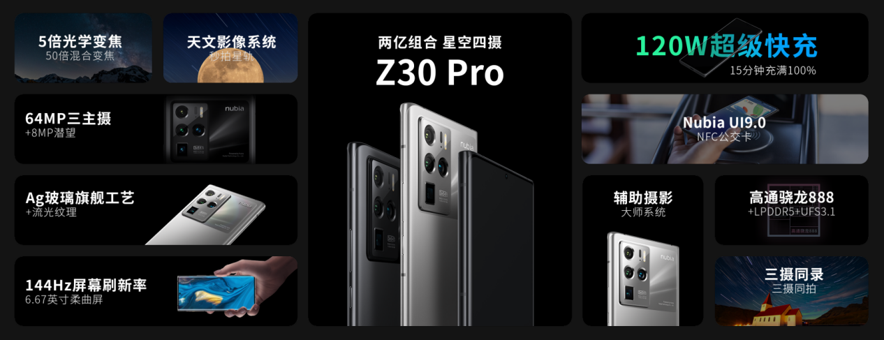 努比亞Z30 Pro將用戶需求與行業(yè)最前沿科技充分結(jié)合,打造無(wú)短板頂尖配置:搭載高通驍龍888+LPDDR5+UFS3.1頂尖性能鐵三角及行業(yè)最高的2億像素四攝組合全主攝影像系統(tǒng),獨(dú)占影像旗艦中最強(qiáng)的120W超級(jí)快充與144 Hz超高刷新率,并將全新升級(jí)的UI交互系統(tǒng)和更加強(qiáng)悍易用的影像功能融于一身,貫徹科技、藝術(shù)與用戶需求完美融合的平衡之道。全新一代努比亞Z系列旗艦——Z30 Pro攜星光而來(lái)。