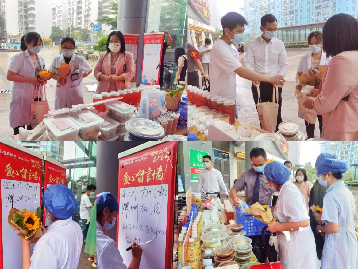 下梅林社區(qū)健康服務(wù)中心的護(hù)士小姐姐們,也在中午換崗的間隙,來(lái)到了活動(dòng)現(xiàn)場(chǎng)挑選美食。護(hù)士小姐姐們非常高興地表示,在暴雨天不用等外賣,就可以享受暖心的美味午餐,可以留出更多的時(shí)間,回到崗位工作,繼續(xù)“戰(zhàn)疫”!其中還有一位可愛(ài)的護(hù)士小姐姐為給自己加油打氣,在愛(ài)心留言墻上,寫(xiě)下了“加油!我們是最棒的!”
