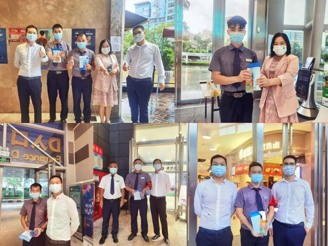 在疫情期間,安保人員作為綠景佐阾虹灣購(gòu)物中心以及綠景虹灣花園的“安全衛(wèi)士”,也一直默默堅(jiān)守在工作崗位,配合政府開(kāi)展一系列防疫措施,努力守護(hù)著我們的家園!綠景佐阾虹灣項(xiàng)目總經(jīng)理吳亞男及總經(jīng)理助理王嵩也來(lái)到了安保值班現(xiàn)場(chǎng),為每一位同事送上了愛(ài)心物資,感謝他們的努力與付出。