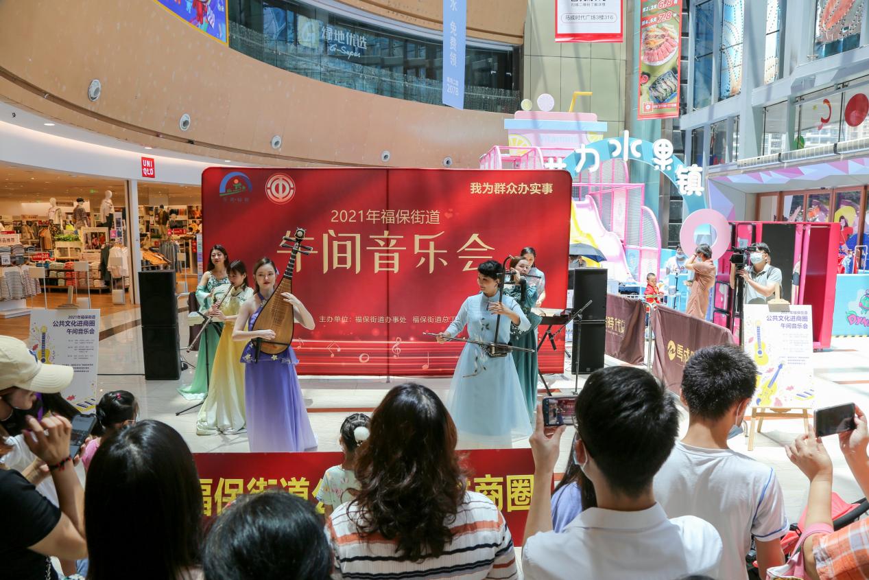 福保街道午間音樂會是福田區(qū)福保街道總工會為轄區(qū)企業(yè)員工量身定制的特色藝術(shù)惠民活動。活動利用午休時間,將音樂會準(zhǔn)點送到轄區(qū)商場、企業(yè)大廈、創(chuàng)意園、工廠等,進(jìn)而豐富企業(yè)職工精神文化生活,讓廣大職工感受到來自政府的關(guān)懷、組織的溫暖,增加員工歸屬感,增強(qiáng)企業(yè)的凝聚力。