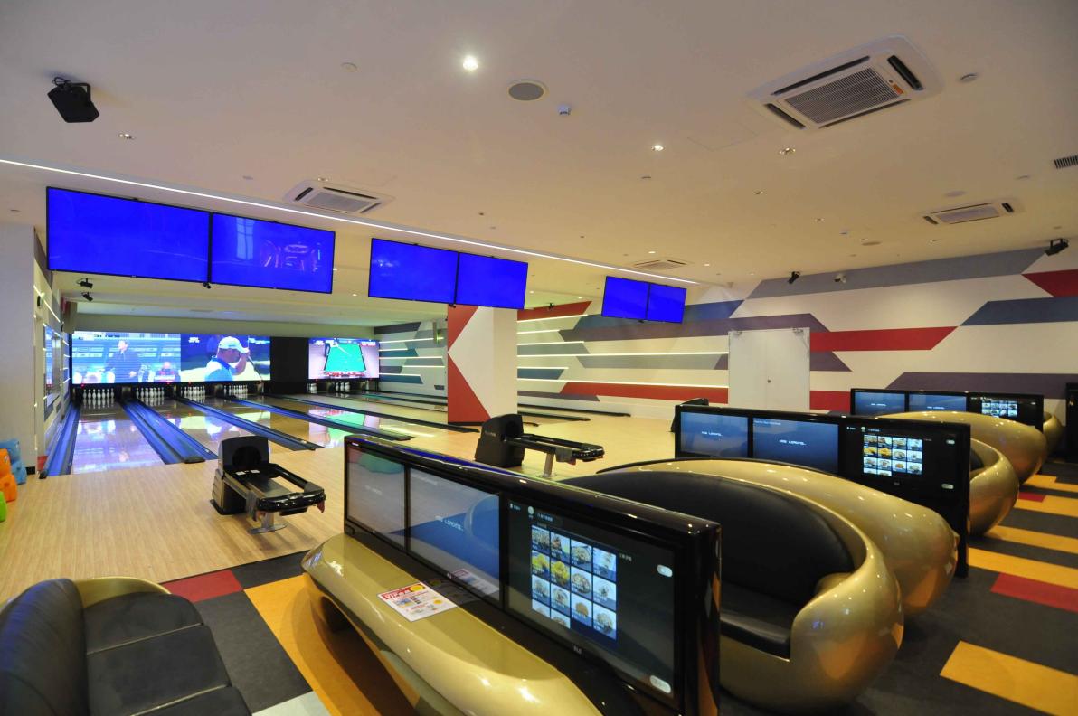 保齡球區(qū)域,朗玩的保齡球采用了美國Brunswick公司最新的保齡球機(jī)。在放置保齡球瓶的上方墻面上,設(shè)置了放映各種運(yùn)動(dòng)、音樂節(jié)目的大屏幕。四周設(shè)有的攝像鏡頭能夠全方位捕捉玩家們投球瞬間,在大屏幕上可以看到這些精彩瞬間。采用了鐳射光線等技術(shù)的華麗活動(dòng)(月光投球游戲)每小時(shí)都會(huì)進(jìn)行一次,閃耀炫酷的設(shè)計(jì)會(huì)顛覆玩家們一直以來對(duì)于保齡球的認(rèn)知!