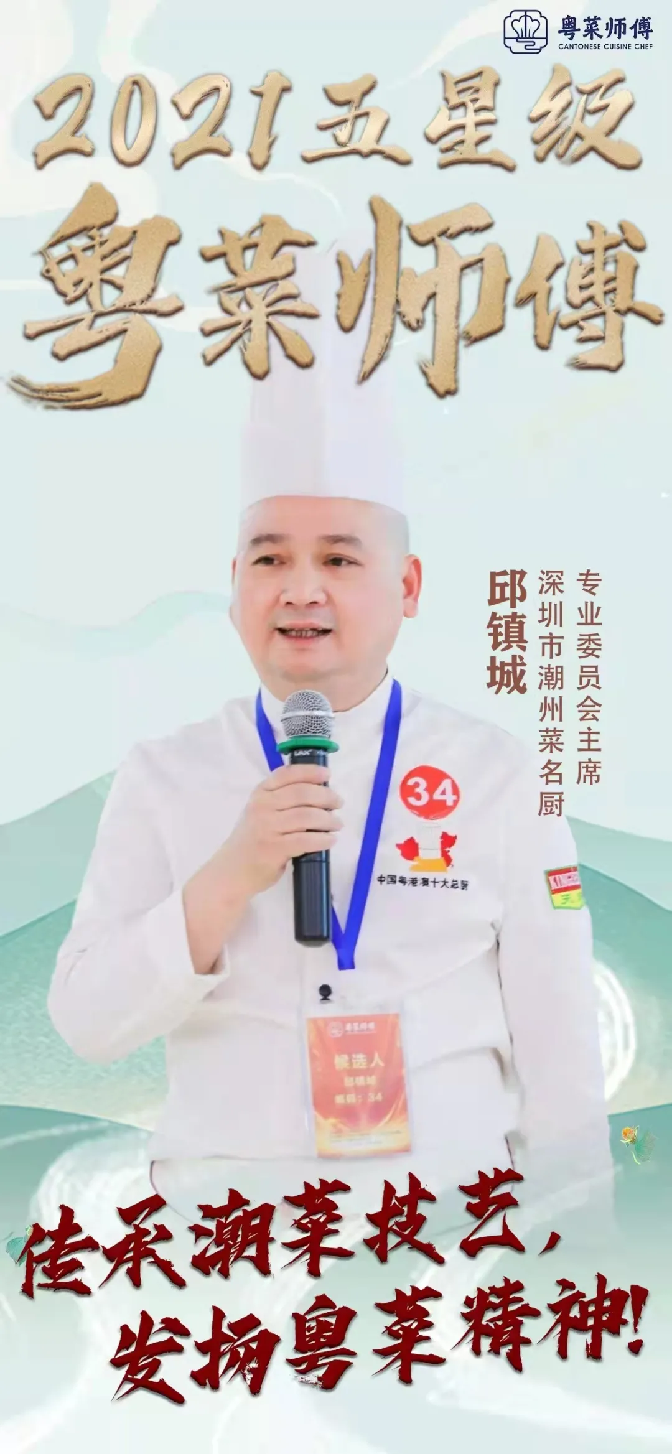 此次評選活動,來自深圳市潮州菜專業(yè)委員會的邱鎮(zhèn)城會長代表深圳餐飲界出戰(zhàn),最終獲得“五星級粵菜師傅名廚”榮譽(yù)稱號,是深圳潮州菜系唯一獲此殊榮的五星級名廚。邱鎮(zhèn)城學(xué)做潮汕菜30年,是深圳“精細(xì)潮州菜”的領(lǐng)軍人物,曾在米盧時代的國家足球隊擔(dān)任大廚,現(xiàn)任深圳市潮州菜名廚委員會主席,其烹飪技術(shù)屢獲好評,是中國粵港澳十大總廚,還是廣東十大南粵廚王、深圳市十佳行政總廚。邱鎮(zhèn)城在推廣、宣傳潮汕美食的同時,將潮汕文化推向首都、傳播全國,體現(xiàn)的是潮人愛拼敢贏、吃苦耐勞的精神。