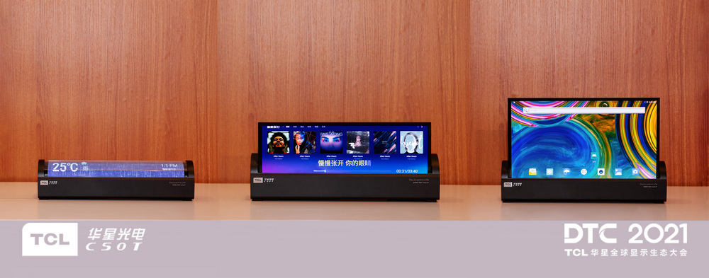 14"噴墨打印OLED卷軸屏,可以自由變換多種形態(tài),數(shù)字顯示鬧鐘、音樂播放器、顯示器,多種應(yīng)用形態(tài)無縫切換,完美融入家居場景中,盡顯柔性O(shè)LED顯示的魅力。它的卷曲半徑<R20mm,在高溫高濕條件下,卷曲壽命高達(dá)10萬次,再配合自發(fā)光高精度噴墨印刷工藝制備技術(shù),以及內(nèi)置的AI補(bǔ)償算法,可以使它的畫面色彩更加明艷通透,顯示效果也得到了大幅提升。該產(chǎn)品目前由TCL華星跟日本JOLED合作推出。