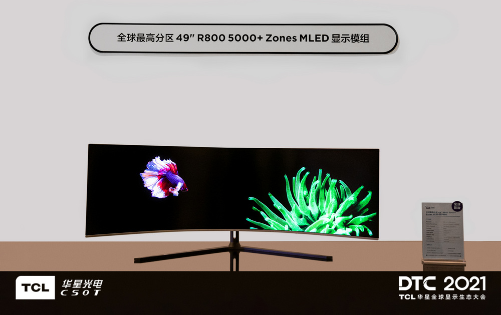 針對 DTC2021五款全球首發(fā)的產(chǎn)品與技術(shù), TCL華星光電副總裁、顯示技術(shù)創(chuàng)新中心總經(jīng)理張鑫作了詳細(xì)介紹。49" R8005000+Zones MLED顯示模組,65"8K噴墨打印OLED,8"無偏光極小半徑360°折疊屏,125"玻璃基透明直顯MLED,14"噴墨打印OLED卷軸屏,5款產(chǎn)品的隆重亮相瞬間成為了全場的焦點(diǎn),其多樣的產(chǎn)品尺寸,豐富的產(chǎn)品形態(tài),全方位地讓現(xiàn)場來賓及媒體,充分了解到TCL華星在屏顯技術(shù)上的研發(fā)底蘊(yùn)與創(chuàng)新實(shí)力。