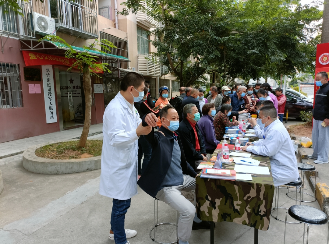 12月19日上午,深圳市人民醫(yī)院疼痛科11名專家與護(hù)士攜帶血壓計(jì)、血糖儀、聽診器、理療儀等儀器到街道退役軍人服務(wù)站開展“愛心義診送健康,為民服務(wù)暖人心”關(guān)愛退役軍人義診活動(dòng)。為防范疫情風(fēng)險(xiǎn),服務(wù)站將健康服務(wù)分區(qū)域并安排工作人員查驗(yàn)健康碼、行程碼、測(cè)體溫,參與人員須佩戴口罩方能進(jìn)入活動(dòng)現(xiàn)場(chǎng)。在服務(wù)站門口通風(fēng)處設(shè)置血糖與血壓測(cè)量處、專家醫(yī)生坐診處,在老兵活動(dòng)室開展健康知識(shí)講座,在黨建活動(dòng)室和老兵談心室開展身體理療服務(wù)。所有服務(wù)同時(shí)開展,退役軍人和居民自主決定參與順序,避免扎堆。