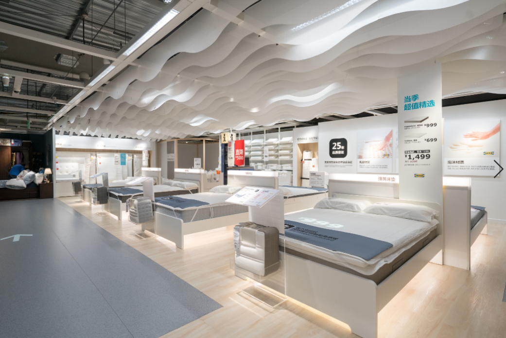 在床墊挑選區(qū),宜家專門設(shè)計了一個床墊的“沉浸式”體驗(yàn)室,可以讓顧客全身心放松地感受宜家床墊。