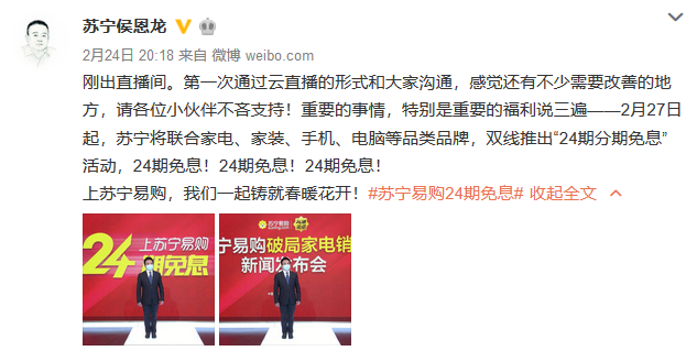 2月27日0點,蘇寧易購家電、家裝、3C等品類,開啟24期分期免息活動。截至12時,銷售額同比增長達710%。