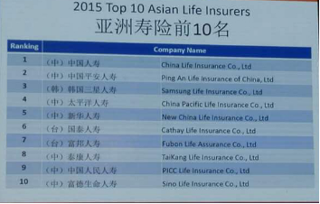 第十屆21世紀亞洲金融年會暨2015年亞洲保險競爭力排名研究報告發(fā)布儀式日前在京舉行,報告顯示,在10個亞洲國家和地區(qū)的243家壽險公司中,新華保險競爭力排名亞洲壽險第五,中國壽險公司第四。