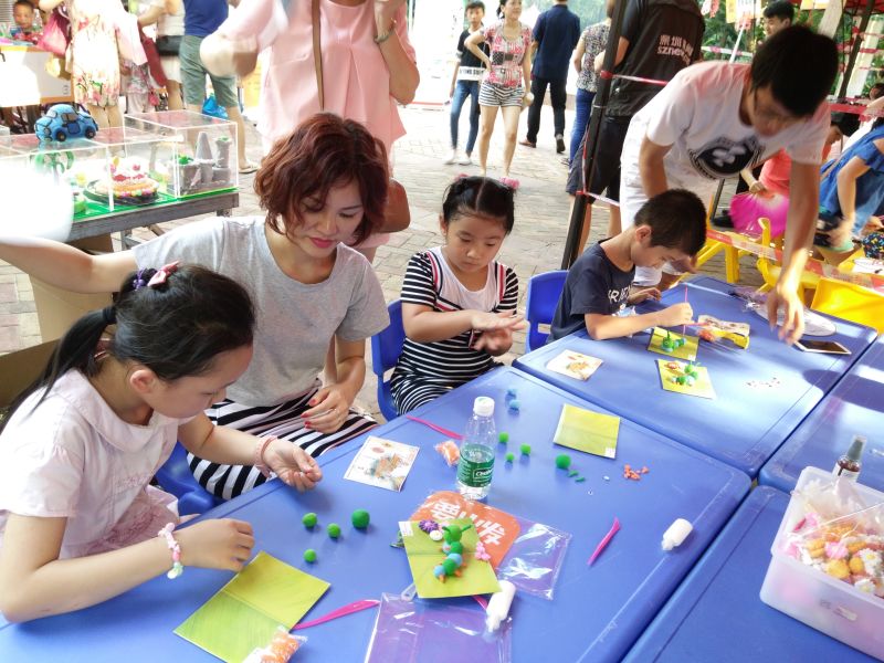 棉花糖、跳房子,讓家長(zhǎng)們找回了童年的記憶和樂(lè)趣。而動(dòng)手動(dòng)腦的扇子彩繪、剪紙、中國(guó)結(jié)制作、軟陶制作則讓孩子們體驗(yàn)到手工制作的樂(lè)趣。