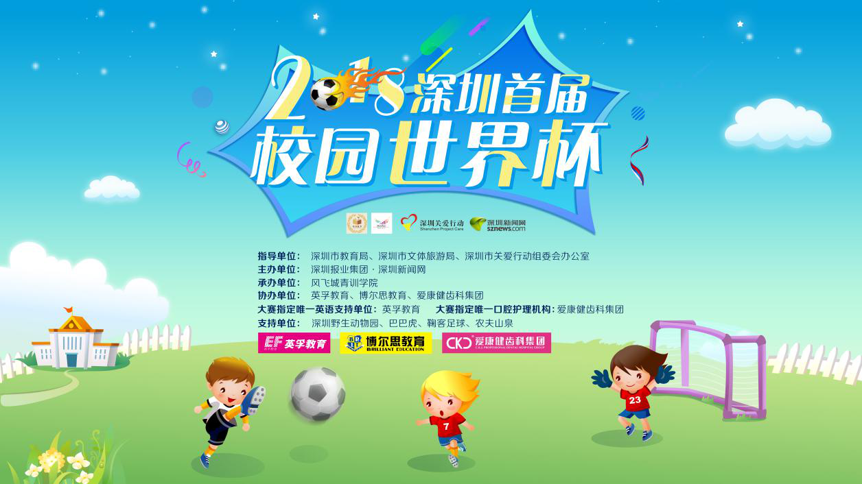 為貫徹“普及+提高”的校園足球方針,普及、傳播深圳校園足球,推動(dòng)校園足球工作健康發(fā)展。由深圳市教育局、深圳市文體旅游局、深圳市關(guān)愛行動(dòng)組委會(huì)辦公室指導(dǎo),深圳新聞網(wǎng)主辦,風(fēng)飛城青訓(xùn)學(xué)院承辦的2018深圳首屆校園世界杯將于2018年7月10日-15日在深圳市仙桐體育公園足球場舉行。
