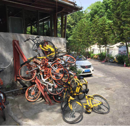 共享單車堆放在公園系暫存