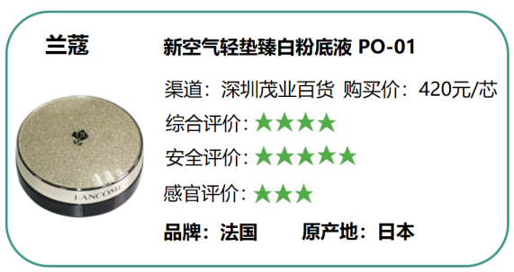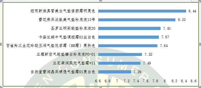 (一)8款氣墊粉底所測項目包括微生物、重金屬、防腐劑和化學(xué)防曬劑等44項指標(biāo),不僅符合國家標(biāo)準(zhǔn)要求,且符合歐盟(包含德國)、美國和日本的標(biāo)準(zhǔn)要求,品質(zhì)安全性達(dá)到國際一流標(biāo)準(zhǔn)。