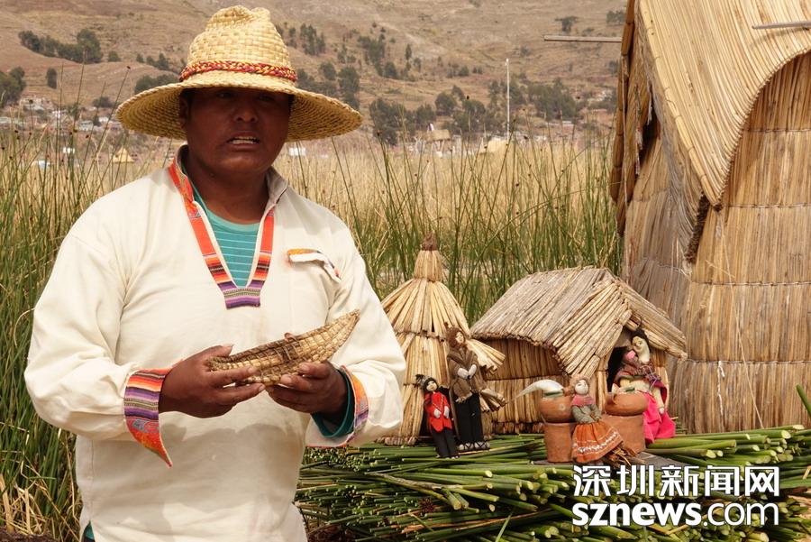 早至遠(yuǎn)古,印第安人用香蒲編成小舟或筏子,下湖捕魚(yú)。湖中還有幾十個(gè)印第安人烏羅族居住的“漂浮島”,它們是用香蒲在湖面堆集而成的人工島,島上的居民都以捕魚(yú)為生。李仁奇 攝