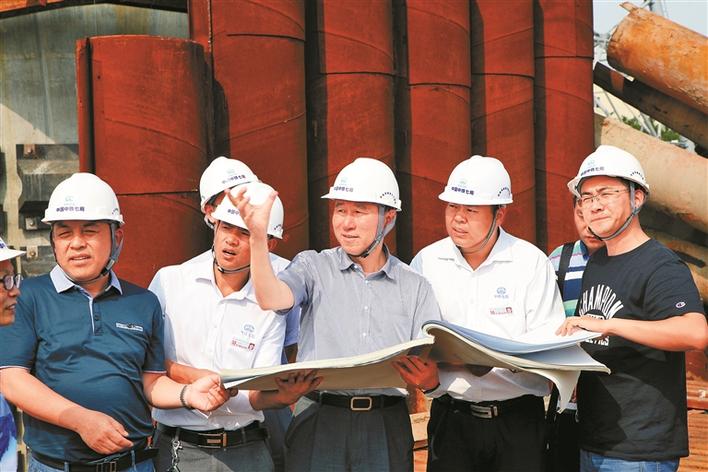 陳宜言(中)等人在施工現(xiàn)場。