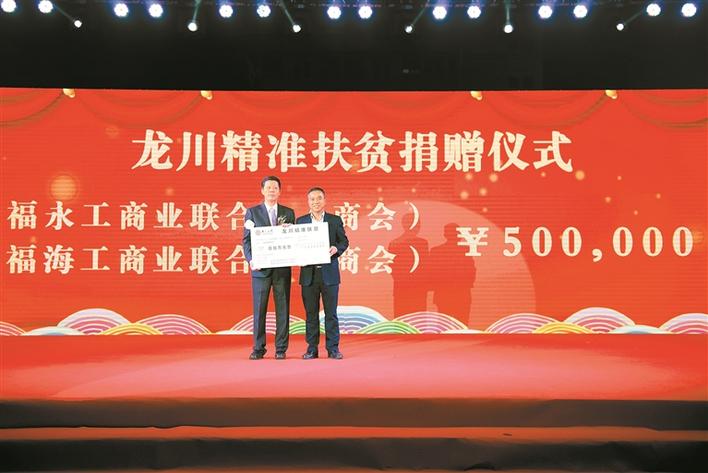黃爾春(左一)代表福商基金會(huì)向福海街道捐贈(zèng)扶貧基金。