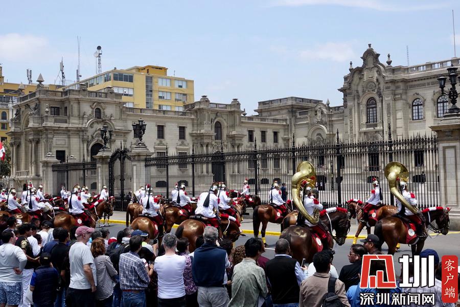 可能也與秘魯民俗有關,秘魯國家軍樂隊也會同時在利馬總統(tǒng)府門前廣場公開盛裝演練,市民都可以近距離觀賞。李仁奇攝