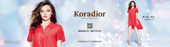 Koradior邀請(qǐng)國(guó)際超模米蘭達(dá)·可兒成為其形象代言人。春夏形象大片登陸深圳機(jī)場(chǎng);