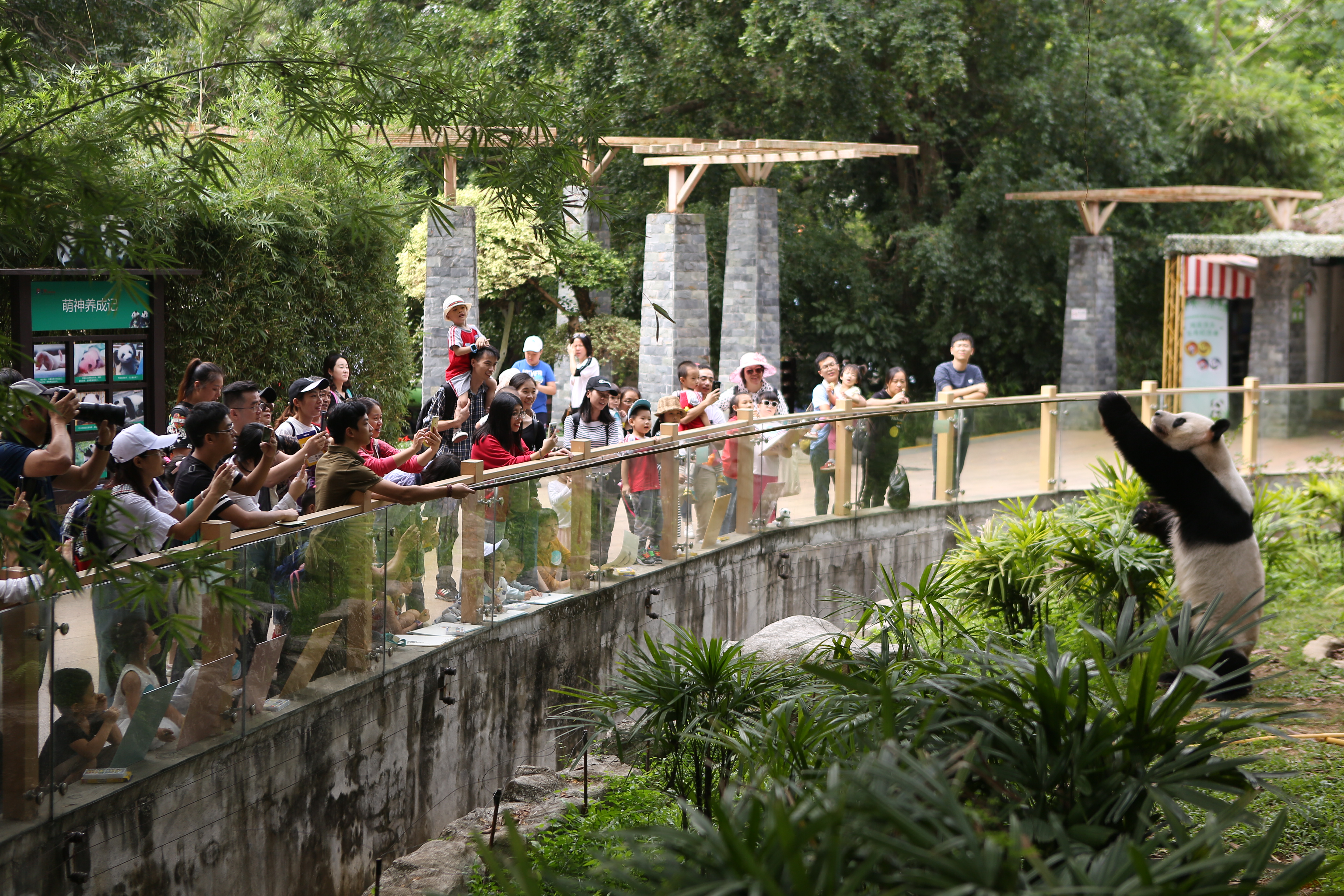 猿猴村的后面,是國(guó)寶大熊貓的家——熊貓莊園。小朋友們來(lái)到這里,瞬間被大熊貓圓滾滾的萌態(tài)所吸引。他們或坐或站,拿起畫(huà)板,完成了從“小飼養(yǎng)員”到“小畫(huà)家”的角色轉(zhuǎn)變。在認(rèn)真觀(guān)察大熊貓后,小朋友們揮動(dòng)手中的畫(huà)筆,將它們的萌態(tài)一一呈現(xiàn)在畫(huà)板上。