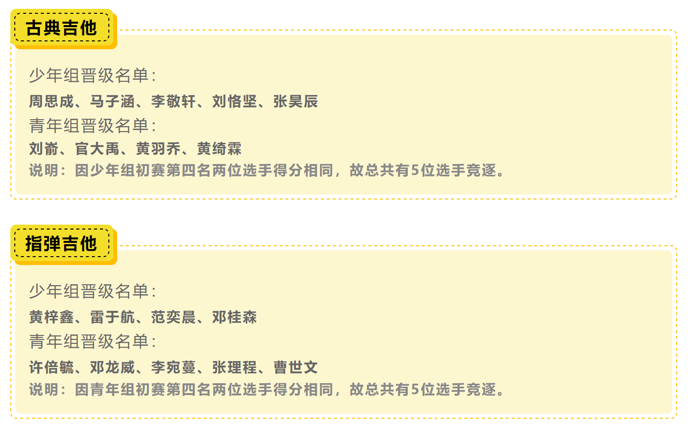 首屆“前海吉他&尤克里里大賽”,在短短一個月內(nèi)收到了全國各地愛好者的踴躍報名!經(jīng)過了專業(yè)評委們對初選綜合評分,最終在激烈的角逐下,組委會篩選出八個組別共34位選手入圍決賽!