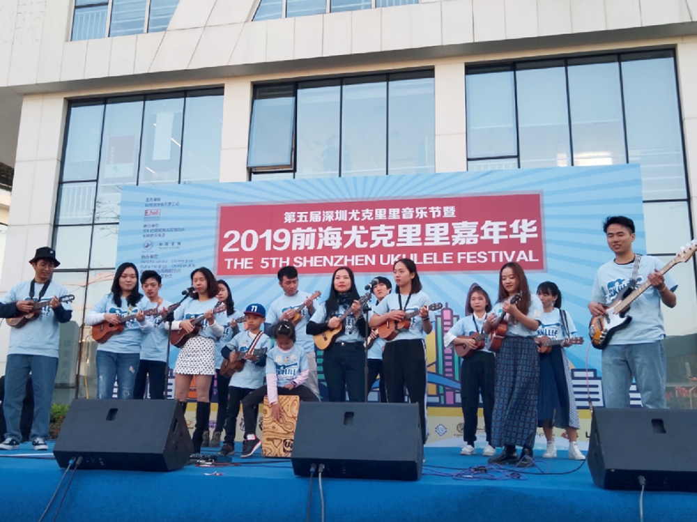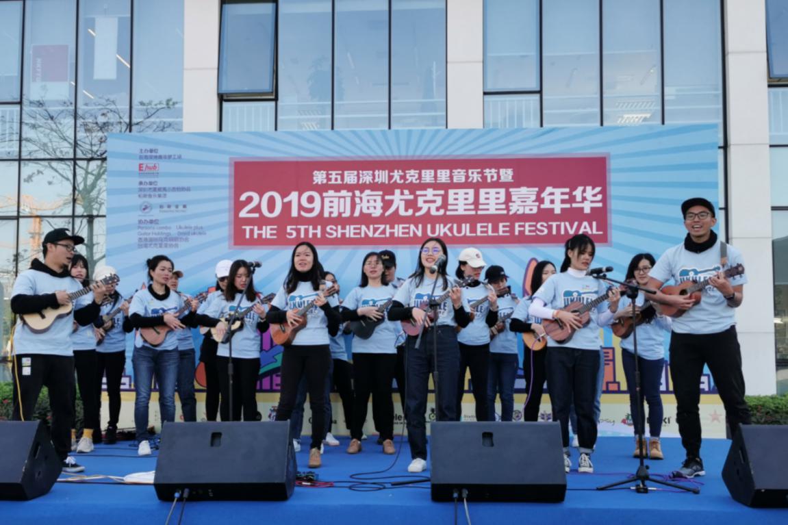深圳第五屆尤克里里音樂節(jié)暨“前海尤克里里嘉年華”舞臺(tái)位于前海深港青年夢(mèng)工場(chǎng)夢(mèng)廣場(chǎng),共有100多名的深港尤克里里愛好者,學(xué)校社團(tuán),企業(yè)社團(tuán)為前海帶來了持續(xù)四個(gè)小時(shí)的尤克里里音樂盛宴。