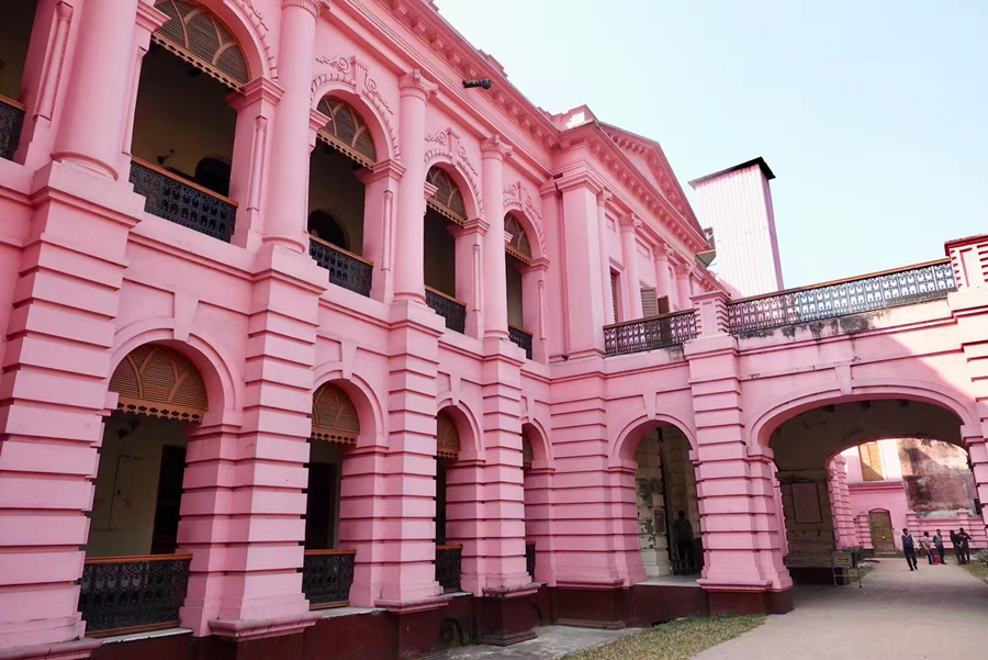 距孟加拉恒河渡口不遠的地方有一座粉紅色宮殿式的豪華建筑。那是1872年一位名叫阿赫桑曼濟勒的地主在法國人留下的倉房基礎(chǔ)上改建的私邸,后來曾在一次龍卷風襲擊時受創(chuàng)。李仁奇 攝