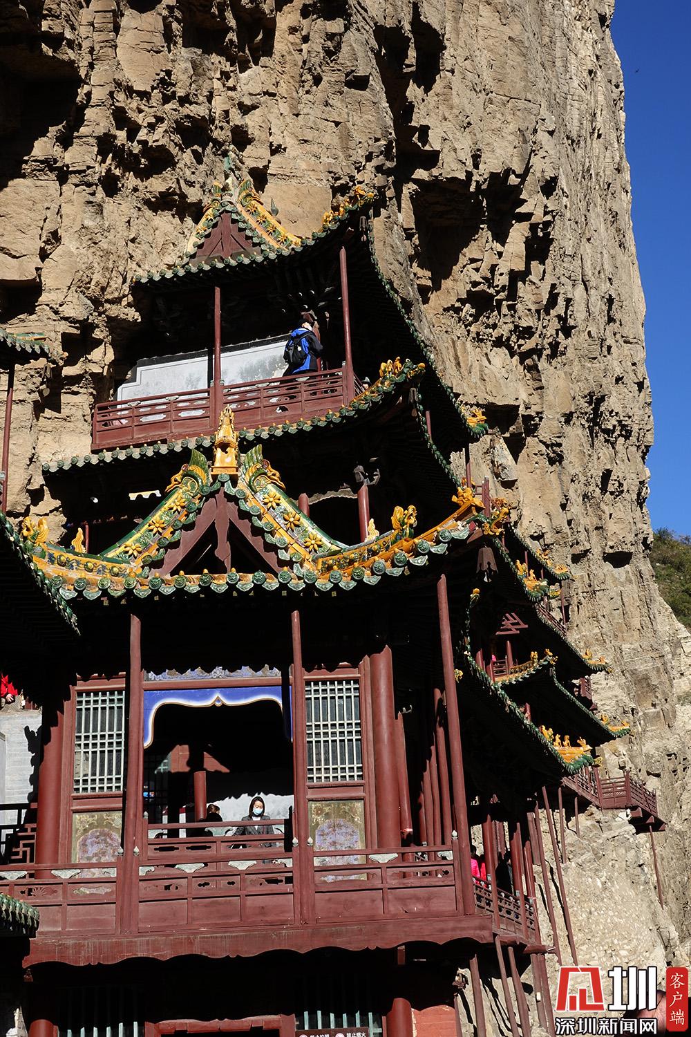 其建筑以臨淵而建、精巧險峻著稱。當?shù)赜小皯铱账?,半天高,三根馬尾空中吊”的俚語。李仁奇攝。