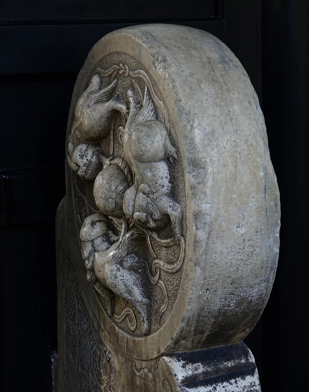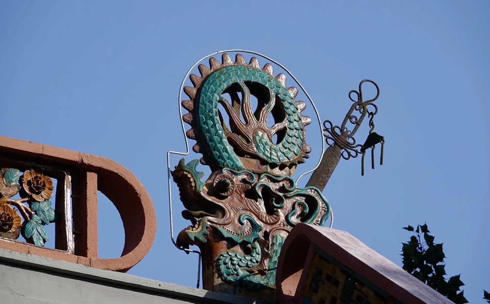 赫曦臺(tái),在臺(tái)的左右內(nèi)壁上有丈余高的"福"、"壽"二字,臺(tái)的頂部雕飾有八卦圖、蝙蝠、壽字圖案。李仁奇 攝