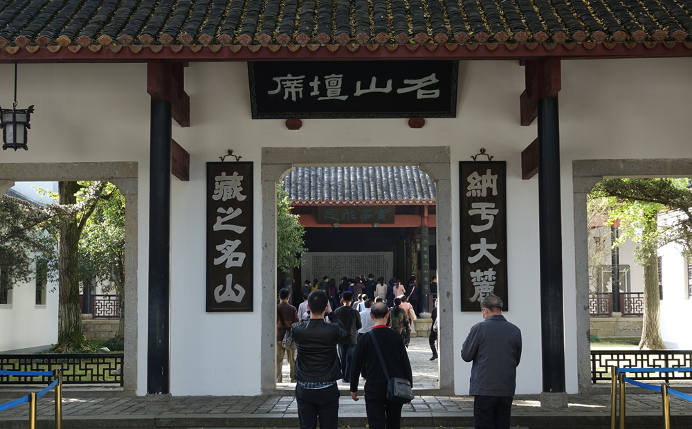 書(shū)院二門(mén),門(mén)額正上方懸有"名山壇席"匾,兩旁有對(duì)聯(lián)"納于大麓;藏之名山",上聯(lián)出自《尚書(shū)·舜典》,下聯(lián)出自《史記·太史公自序》。李仁奇 攝