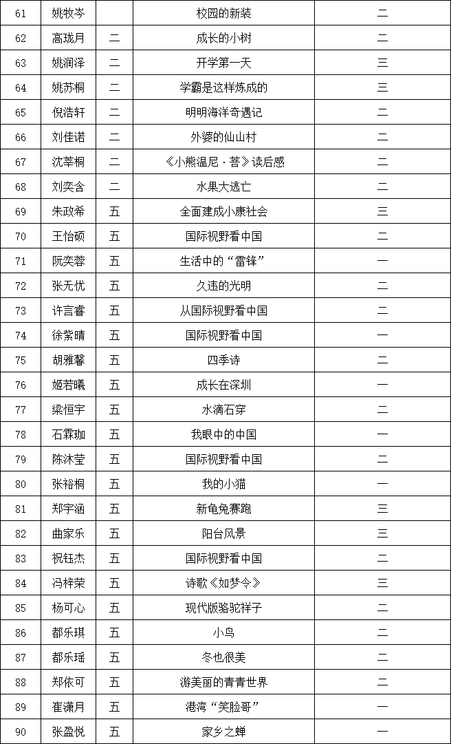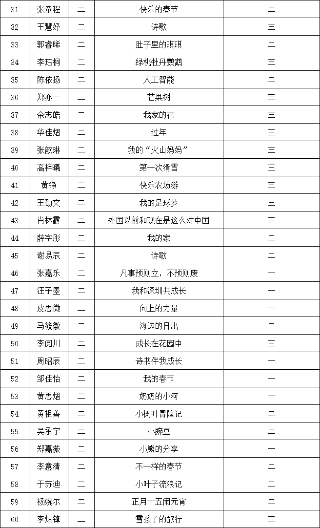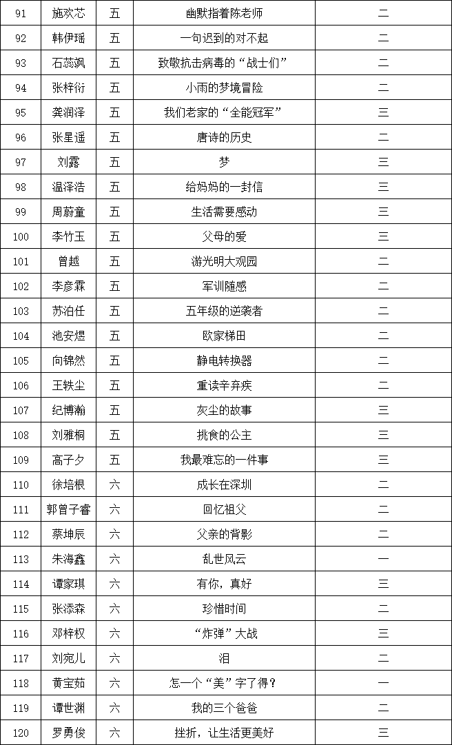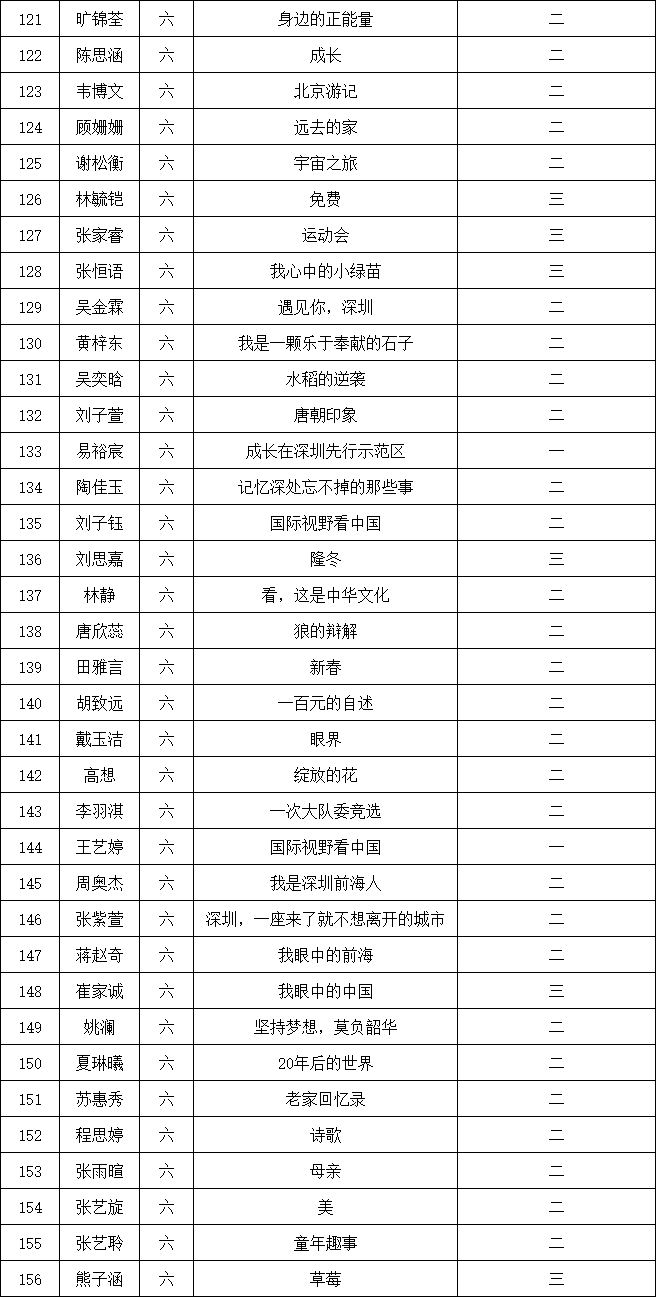 自2021年1月,活動征稿啟動以來,獲得了深圳市廣大中小學生、教師、文學愛好者的熱烈響應積極參與,吸引了深圳百余所學校的上萬人關注報名。現(xiàn)公布南山實驗教育集團前海港灣學校校園專場晉級復賽名單如下: