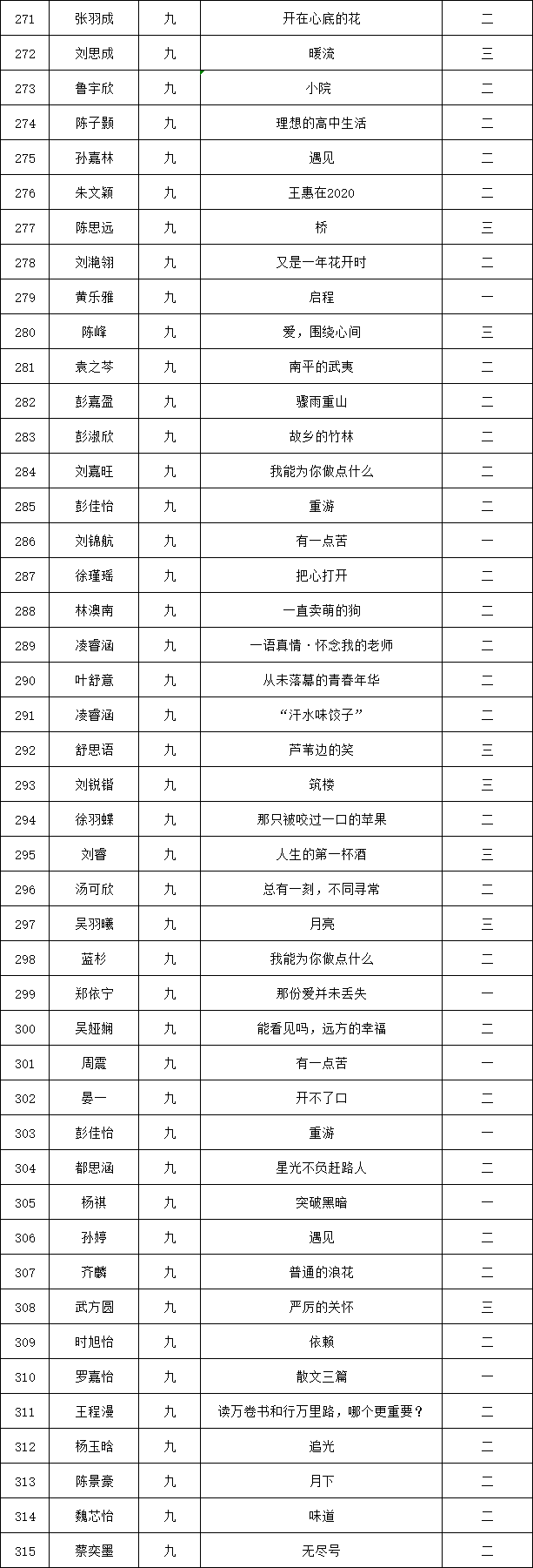 自2021年1月,活動征稿啟動以來,獲得了深圳市廣大中小學(xué)生、教師、文學(xué)愛好者的熱烈響應(yīng)積極參與,吸引了深圳百余所學(xué)校的上萬人關(guān)注報名。現(xiàn)公布龍華區(qū)外國語學(xué)校專場晉級復(fù)賽名單如下: