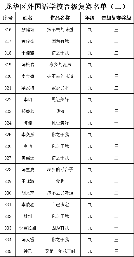 自2021年1月,活動征稿啟動以來,獲得了深圳市廣大中小學生、教師、文學愛好者的熱烈響應積極參與,吸引了深圳百余所學校的上萬人關注報名?,F(xiàn)公布龍華區(qū)外國語學校專場晉級復賽名單如下: