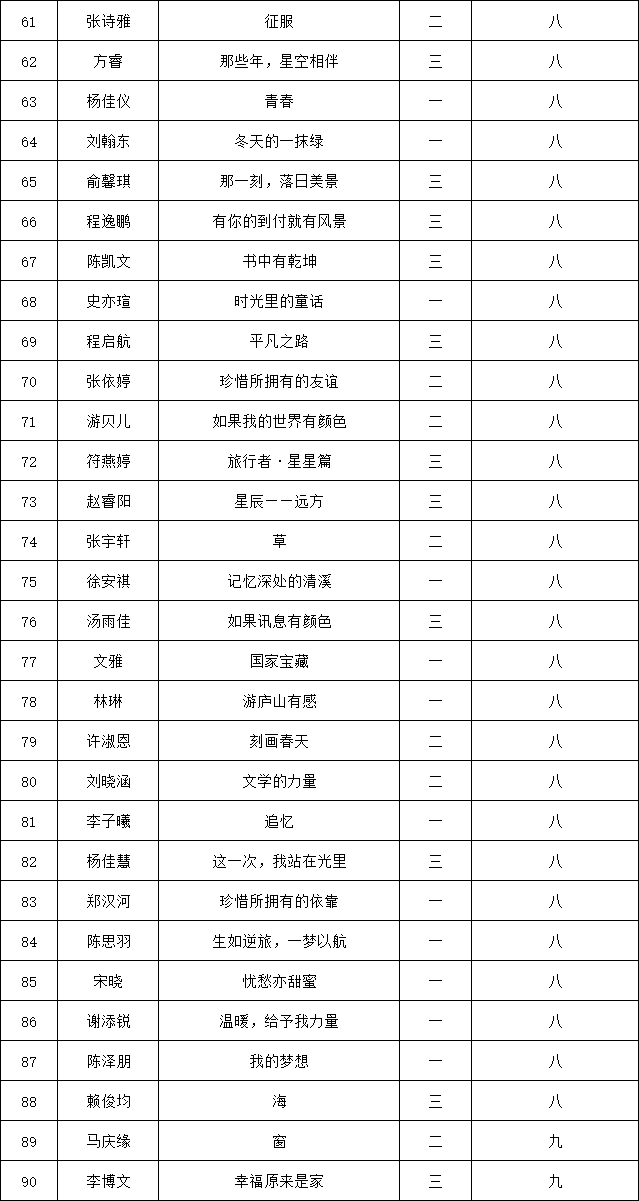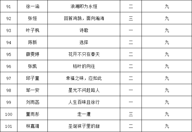 自2021年1月,活動征稿啟動以來,獲得了深圳市廣大中小學(xué)生、教師、文學(xué)愛好者的熱烈響應(yīng)積極參與,吸引了深圳百余所學(xué)校的上萬人關(guān)注報名?,F(xiàn)公布南山實驗教育集團前海港灣學(xué)校(初中部)專場晉級復(fù)賽名單如下: