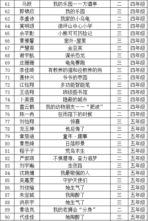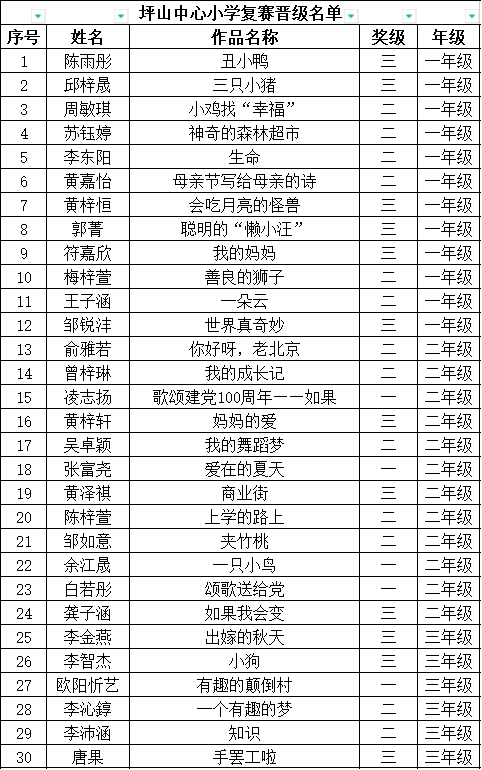 自2021年1月,活動征稿啟動以來,獲得了深圳市廣大中小學生、教師、文學愛好者的熱烈響應積極參與,吸引了深圳百余所學校的上萬人關注報名。現(xiàn)公布坪山區(qū)坪山中心小學晉級復賽名單如下:
