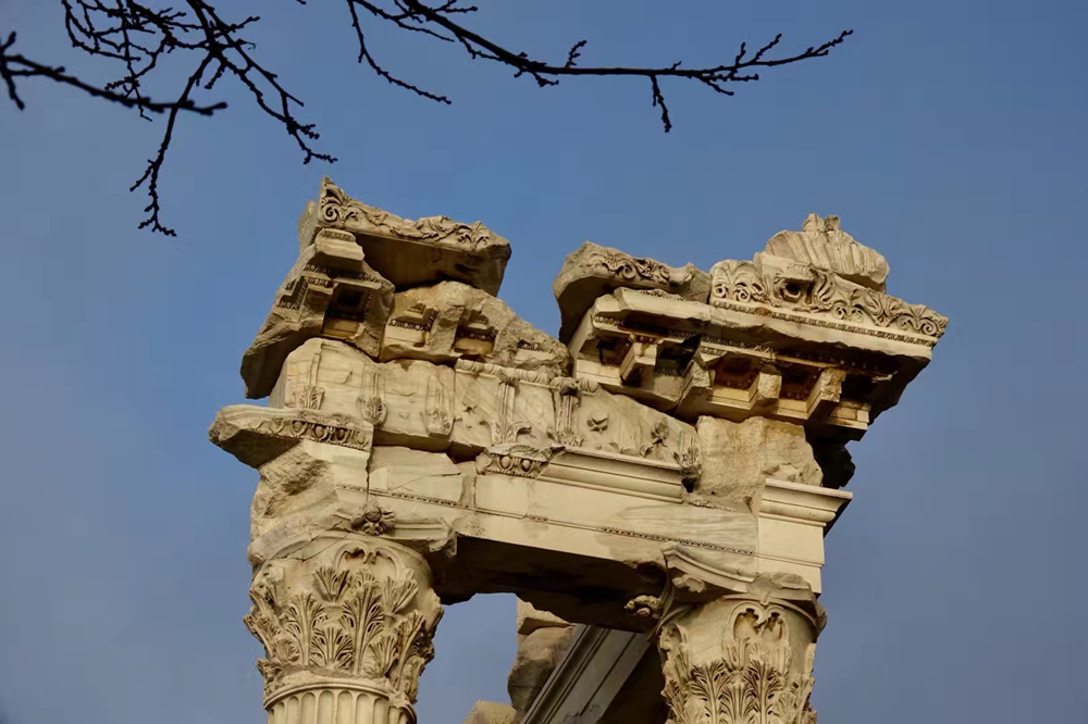 德國考古學(xué)家19世紀(jì)曾對這一遺址考古發(fā)掘,部分祭壇和殘存浮雕經(jīng)修繕裝配后現(xiàn)陳列在德國柏林的帕加馬博物館。李仁奇 攝