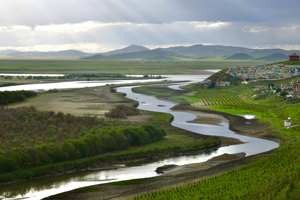 山下藏傳佛教格魯派的索克藏寺,有著藏族獨(dú)特的建筑風(fēng)格,精妙的唐卡繪畫藝術(shù);金燦燦的大殿給草原帶來(lái)神圣之感,河岸邊的經(jīng)幡又給美麗的九曲黃河第一灣增添了幾分莊嚴(yán)。李仁奇 攝