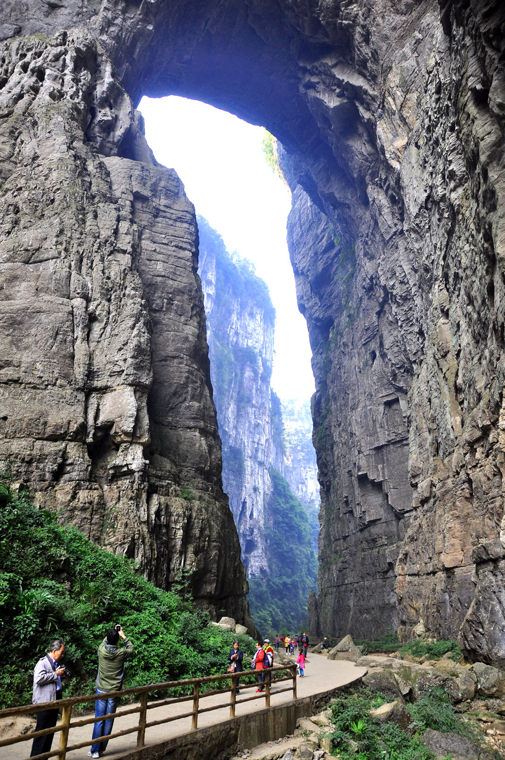 天生三橋是距天女山鎮(zhèn)最近、也是當?shù)刈钪饕木包c,是全國罕見的地質(zhì)奇觀生態(tài)型旅游區(qū)。景區(qū)以天龍橋、青龍橋、黑龍橋三座氣勢磅礴的天然石拱橋和與其共生共存的天坑稱奇于世,屬亞洲最大的天生橋群,具有雄、奇、險、秀、幽、絕等特點。李仁奇 攝