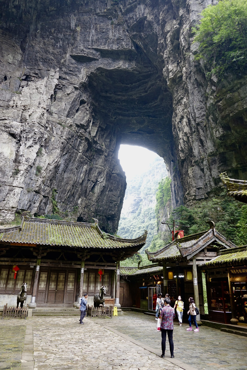 天龍橋為羊水河峽谷上的第一座天生橋,又名頭道橋,高大厚重、磅礴氣勢,以雄壯稱奇。橋高235m,橋厚150m,平均拱橋高度96m。拱孔跨度20-75m,平均34m,橋面寬度147m。李仁奇 攝