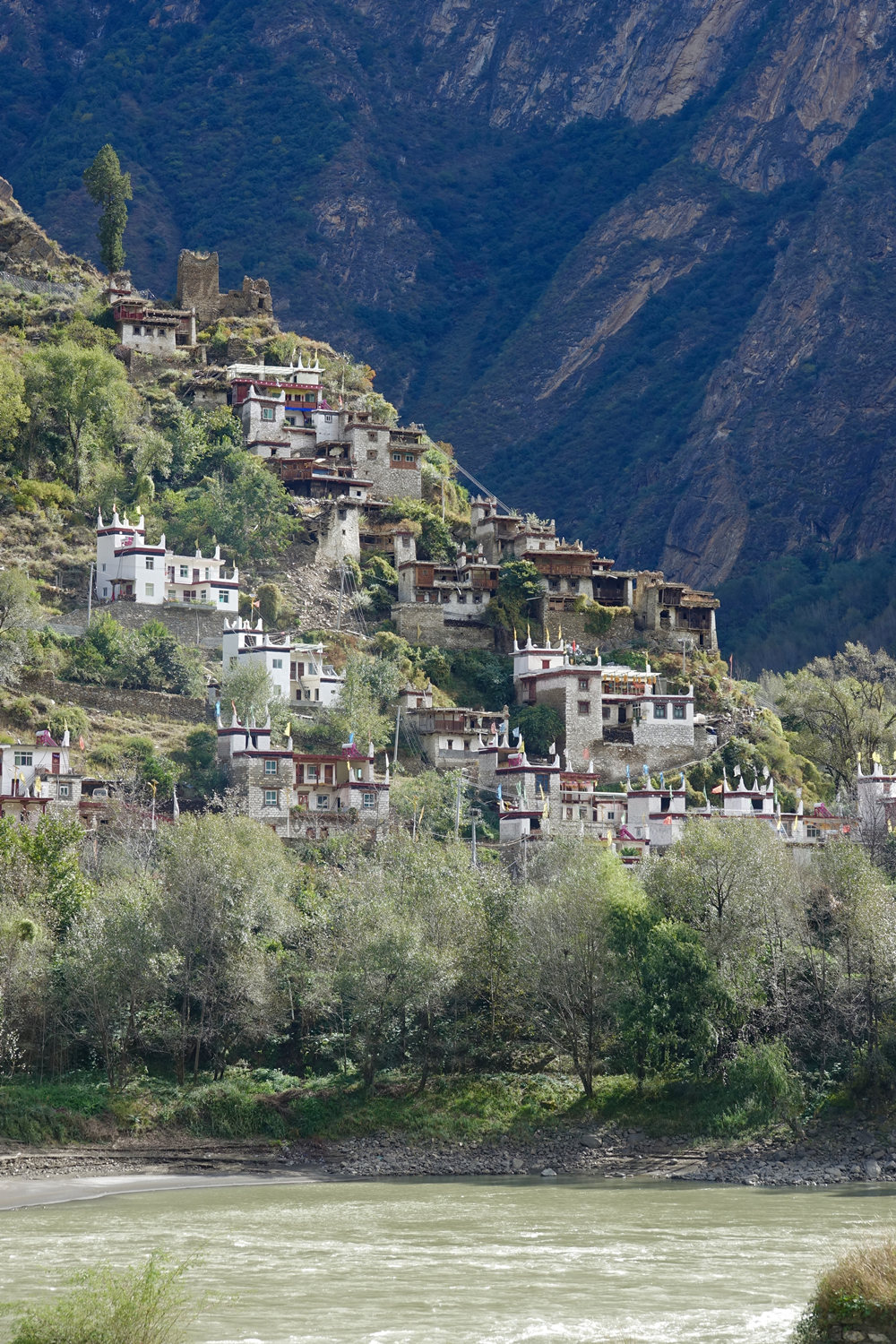 嘉絨藏民多居住在河谷或半山向陽(yáng)的寨子里。自古以來(lái),他們建就地取材建房,用黃泥作粘合劑,以石塊砌墻,以巨木為梁,橫搭雜木,蓋土于上,堅(jiān)固不漏。李仁奇 攝