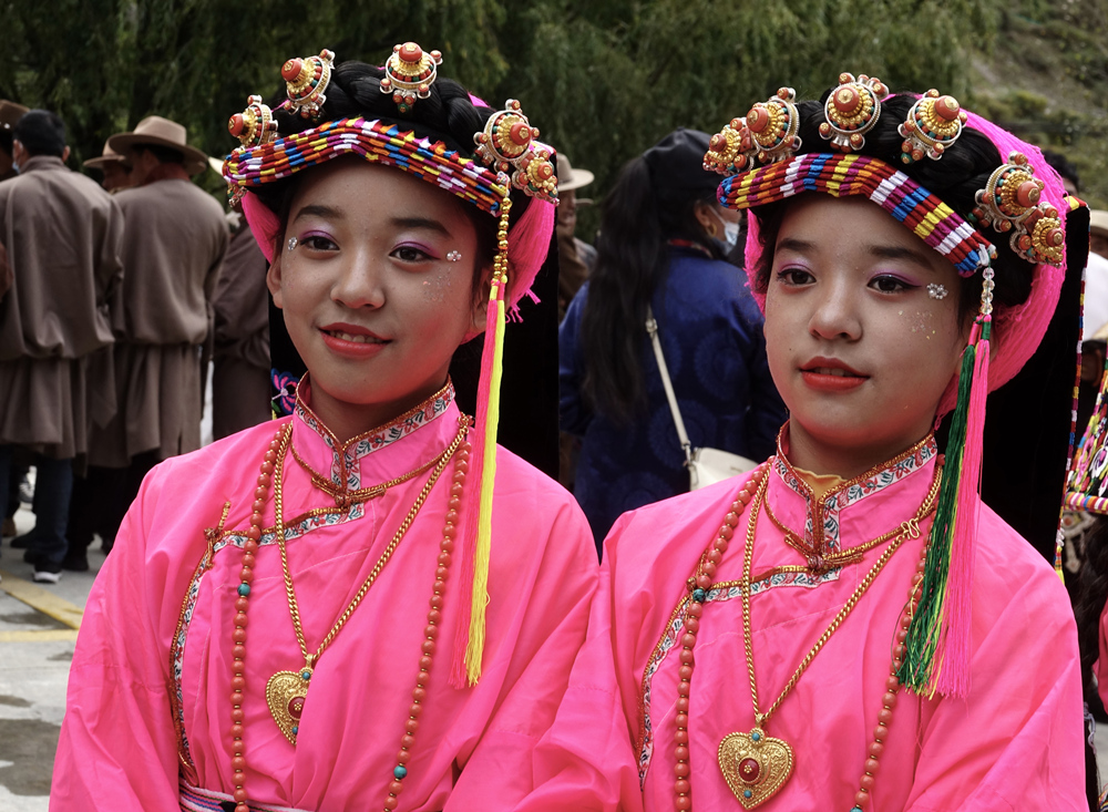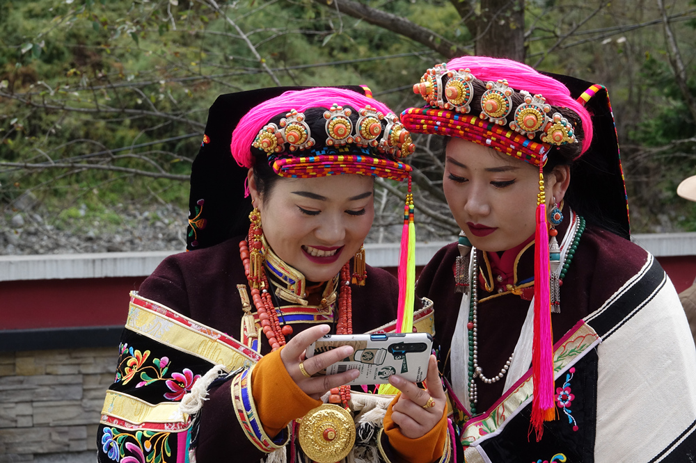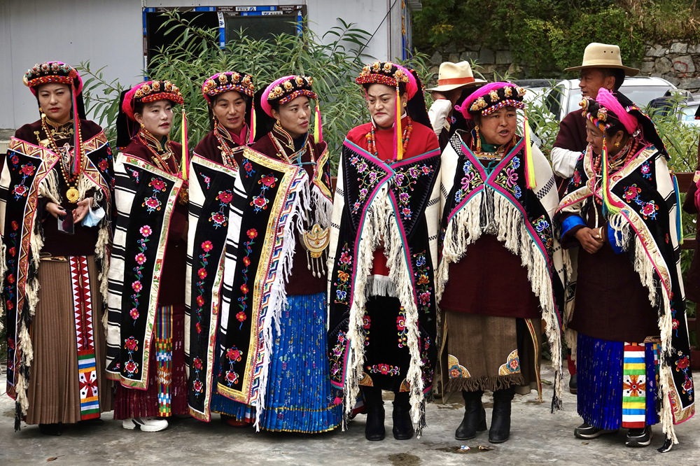 嘉絨人居住的地方海拔大多在2000—3000米,氣候比較溫和,其服裝以棉質(zhì)為主,較少采用皮毛,婦女的頭巾和裙裾色彩鮮艷、講究刺繡,與牧區(qū)的藏胞有明顯的區(qū)別。李仁奇 攝