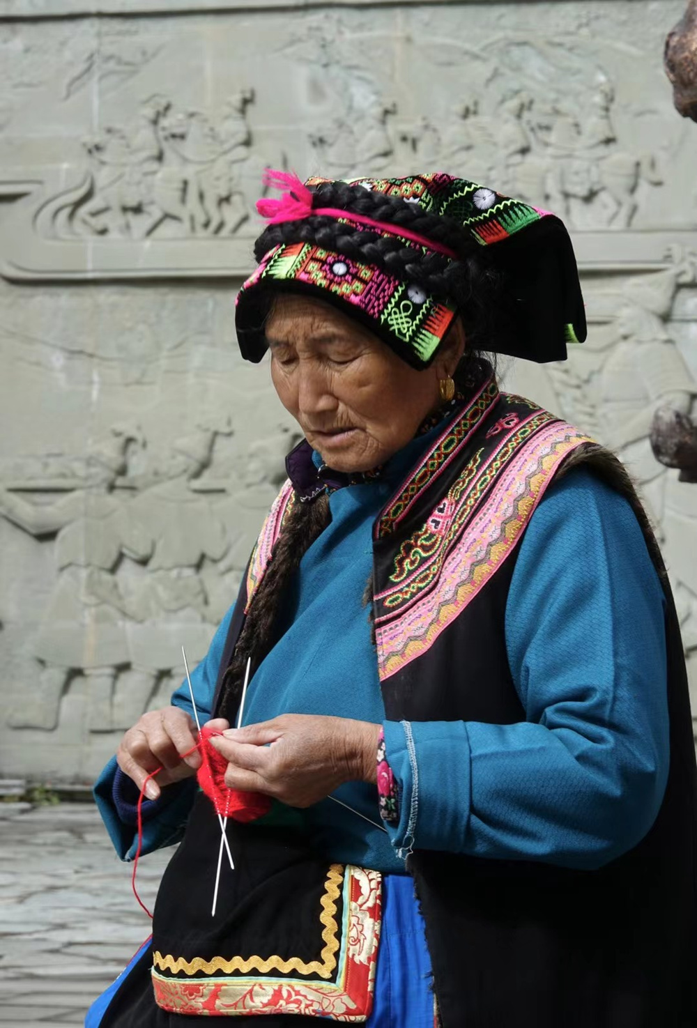 嘉絨人多彩的頭飾(背面)。李仁奇 攝