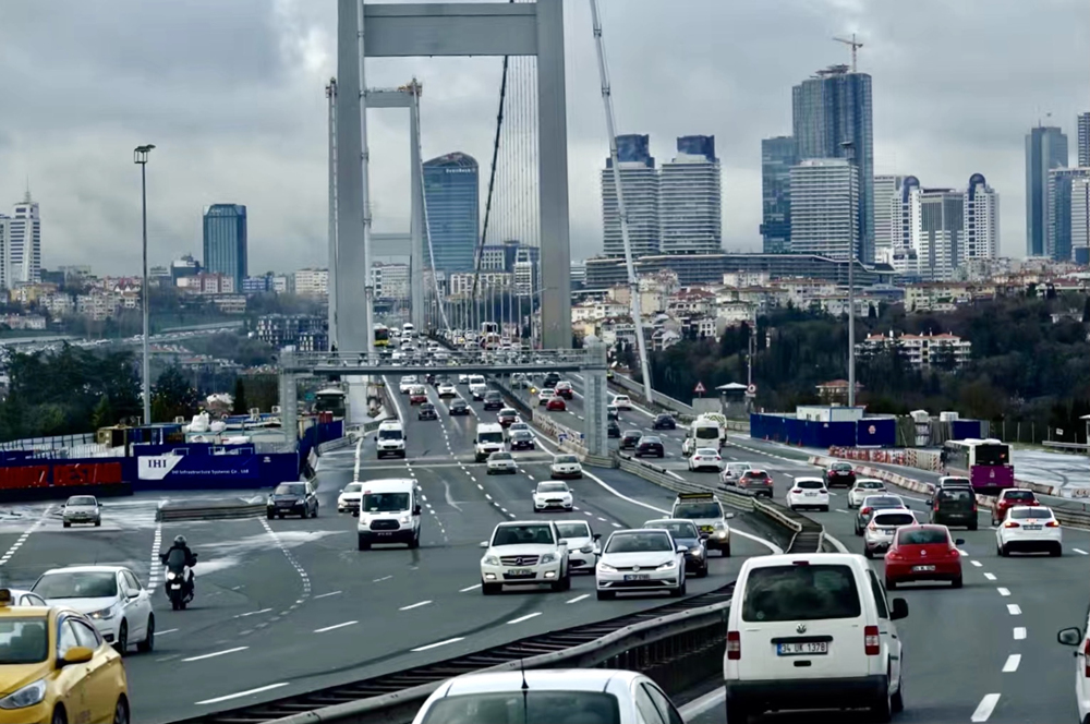 大橋正中有一道白線,白線以東是亞洲,以西是歐洲。李仁奇 攝