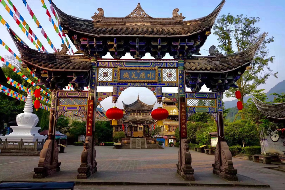 水磨古鎮(zhèn)位于四川省汶川縣南部的岷江支流壽溪河畔,距“5·12”汶川大地震震中映秀鎮(zhèn)19公里,距世界文化遺產(chǎn)都江堰25公里,距成都市區(qū)70公里,位置優(yōu)越,交通方便,是阿壩藏族羌族自治州的南大門。李仁奇 攝