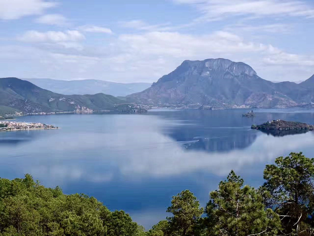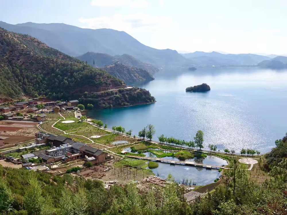 當?shù)厝朔Q瀘沽湖為“謝納咪”,意為大海、母湖,從高處鳥瞰,如一只展翅的飛燕,被譽為“高原明珠”。李仁奇 攝