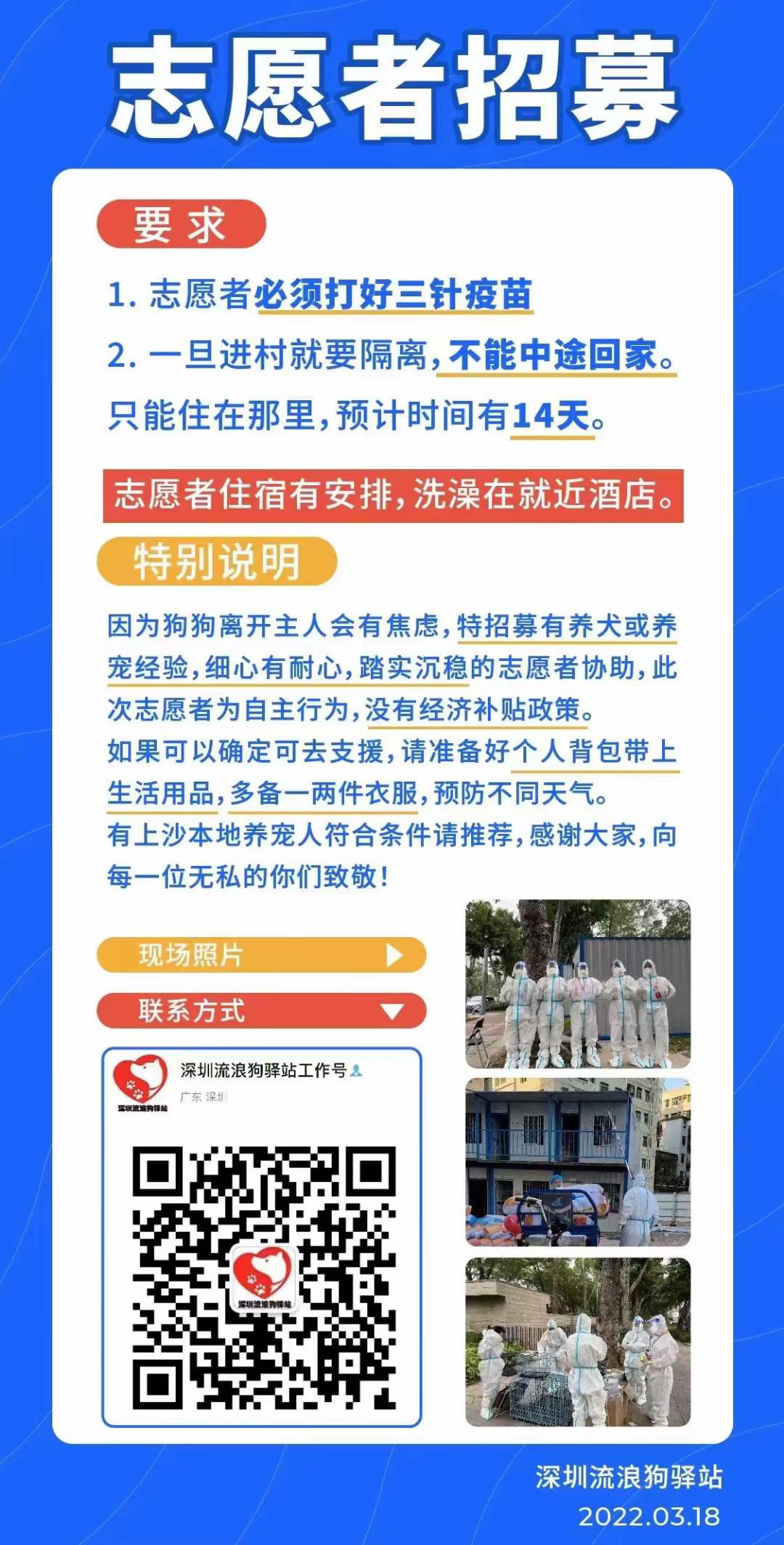 此外,為防止后續(xù)安置寵物數(shù)量增多出現(xiàn)人手不足的情況,深圳動(dòng)物相關(guān)的公益組織也發(fā)起了志愿者征集,具體要求和聯(lián)系方式見(jiàn)下圖。