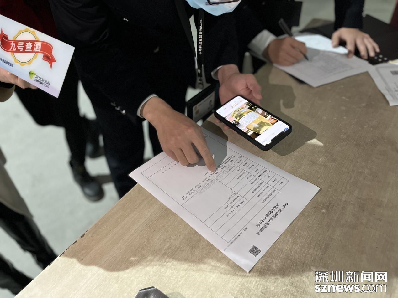 執(zhí)法人員正在核對(duì)該進(jìn)口酒水的檢驗(yàn)檢疫證明信息。