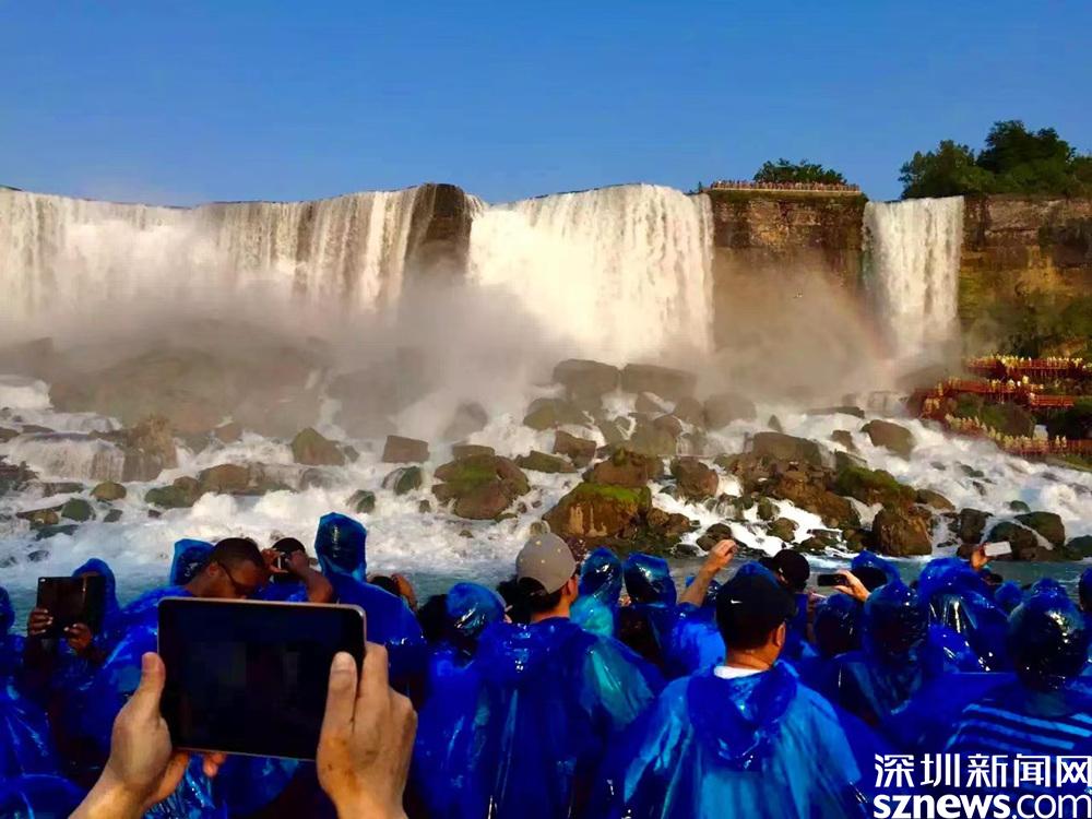 不同的是,在加拿大一側(cè)穿的是紅色雨衣,美國(guó)一側(cè)是穿的是藍(lán)色雨衣。李仁奇 攝
